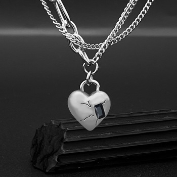 Vente en gros, design original, mode américaine, collier croix cœur double couche en acier titane style hiphop pour fêtes, stock de cadeaux