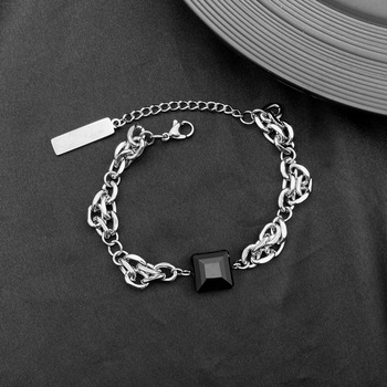 Nhà Sản Xuất Mới Titan Thép Vòng Đeo Tay Ins Thích Hợp Thiết Kế Cho Các Cặp Vợ Chồng Hợp Thời Trang Unisex Vuông Màu Đen Đá Quý Phổ Biến Đồ Trang Sức Cổ