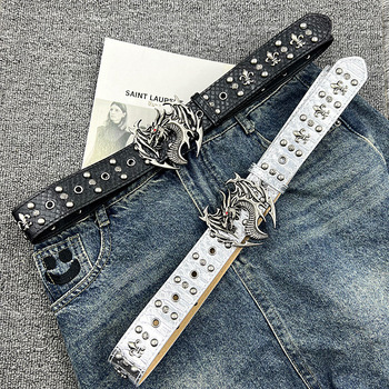 New Chất lượng cao da vành đai hợp thời trang màu đen bạc phong cách rồng theo chủ đề vành đai Retro Niche nhiều đinh tán thời trang người đàn ông bán buôn